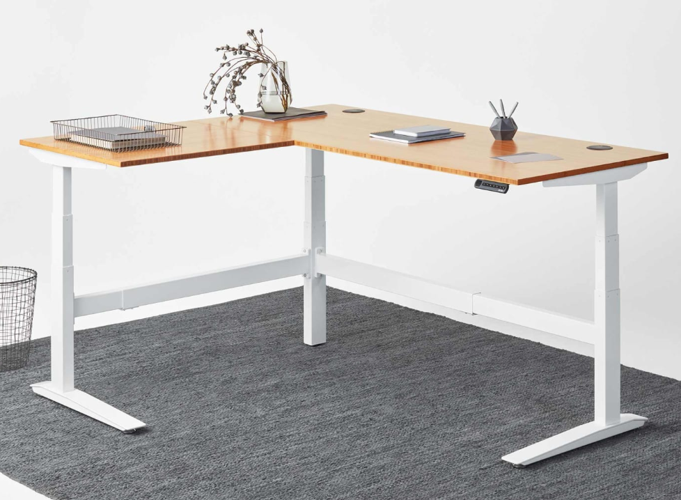 Ervaar een rustige werkomgeving met het Jaswig zit-sta hoekbureau.